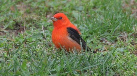 So that’s just a little bit I learned about a bird that is common in our area but I don’t often see. Next time you’re in the woods in the spring, check those tall trees for a bright red singer.